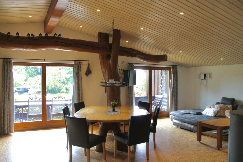 Auch unsere Ferienwohnungen sind liebevoll gestaltet und verbinden moderne Ausstattung mit ländlichem Charme. Viel Holz und durchdachte Details schaffen eine gemütliche Atmosphäre.